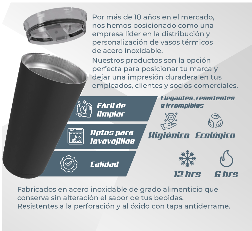 Deseas promocionar tu marca de manera efectiva. Nuestros vasos térmicos personalizados, con el logo de tu empresa grabado con láser, se convierten en una poderosa herramienta de marketing para posicionar tu marca.